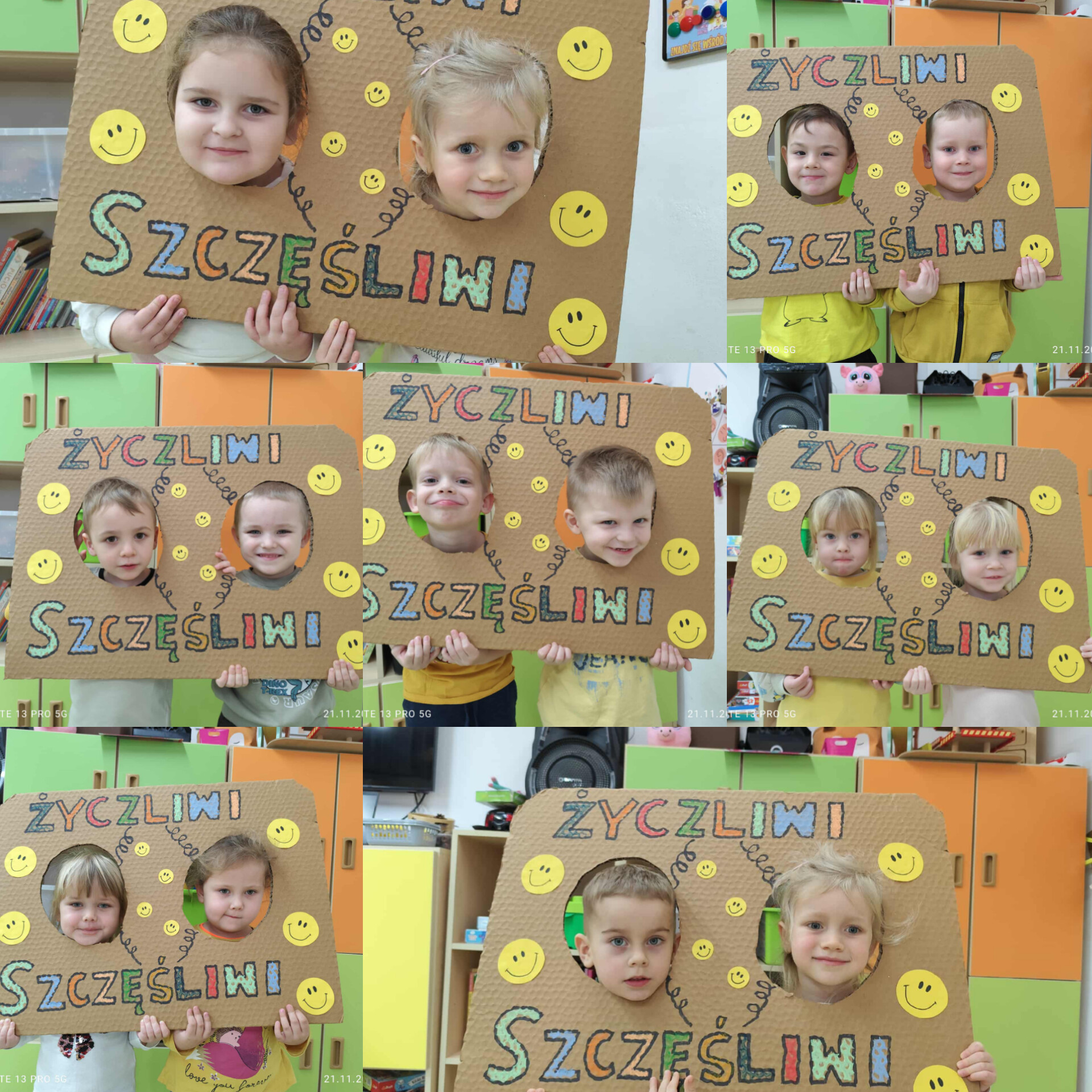 Zajęcia rozpoczęły od zabawy integracyjnej w kole a po niej dzieci wysłuchały piosenki "Więcej miejcie życzliwości ". Następnie wypowiadały się na temat zachowania sióstr w piosence oraz przypomniały sobie o magicznych słowach. Integrowaliśmy się poprzez wykonanie życzliwych gestów. Żabki dzieliły ilustracje na dobre i złe uczynki przyporządkowując je do odpowiedniej emotki. Dzieci bawiły się przy takich utworach jak: "Gest życzliwości"; "Małe gesty, wielka sprawa". Na koniec zajęć odbyła się zabawa w parach oraz wspólne pamiątkowe zdjęcia.