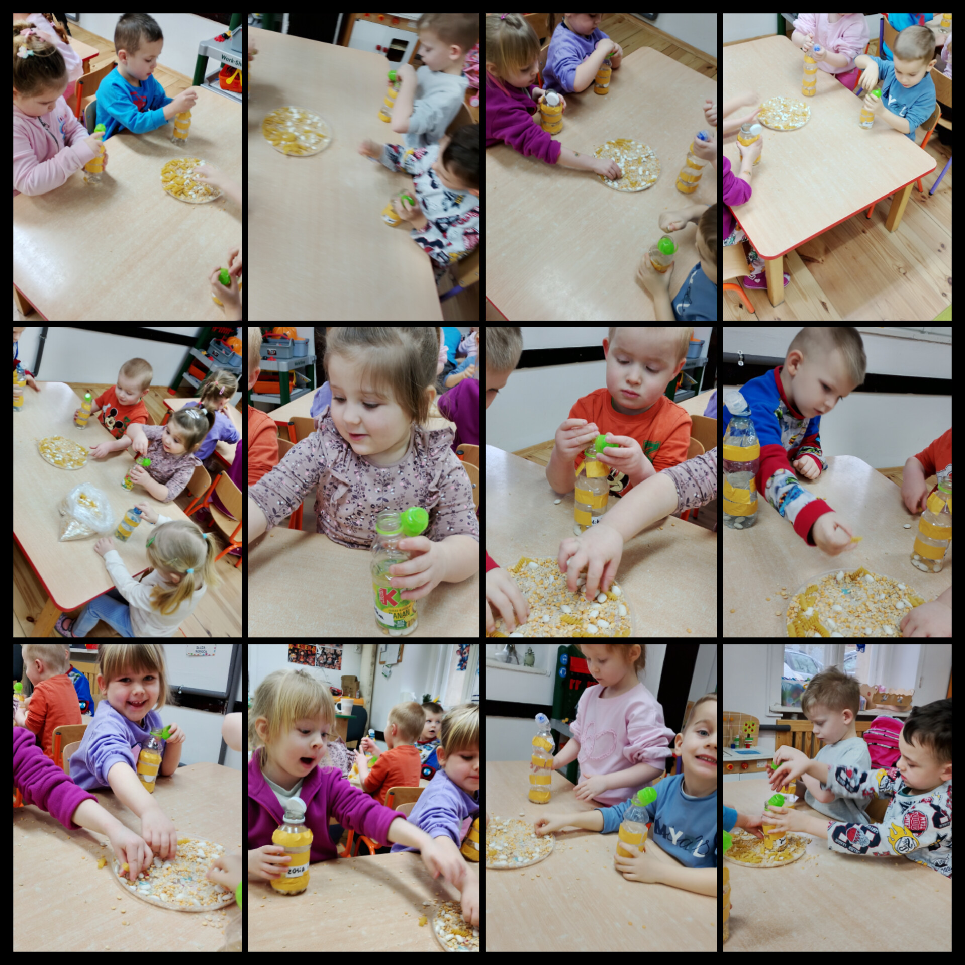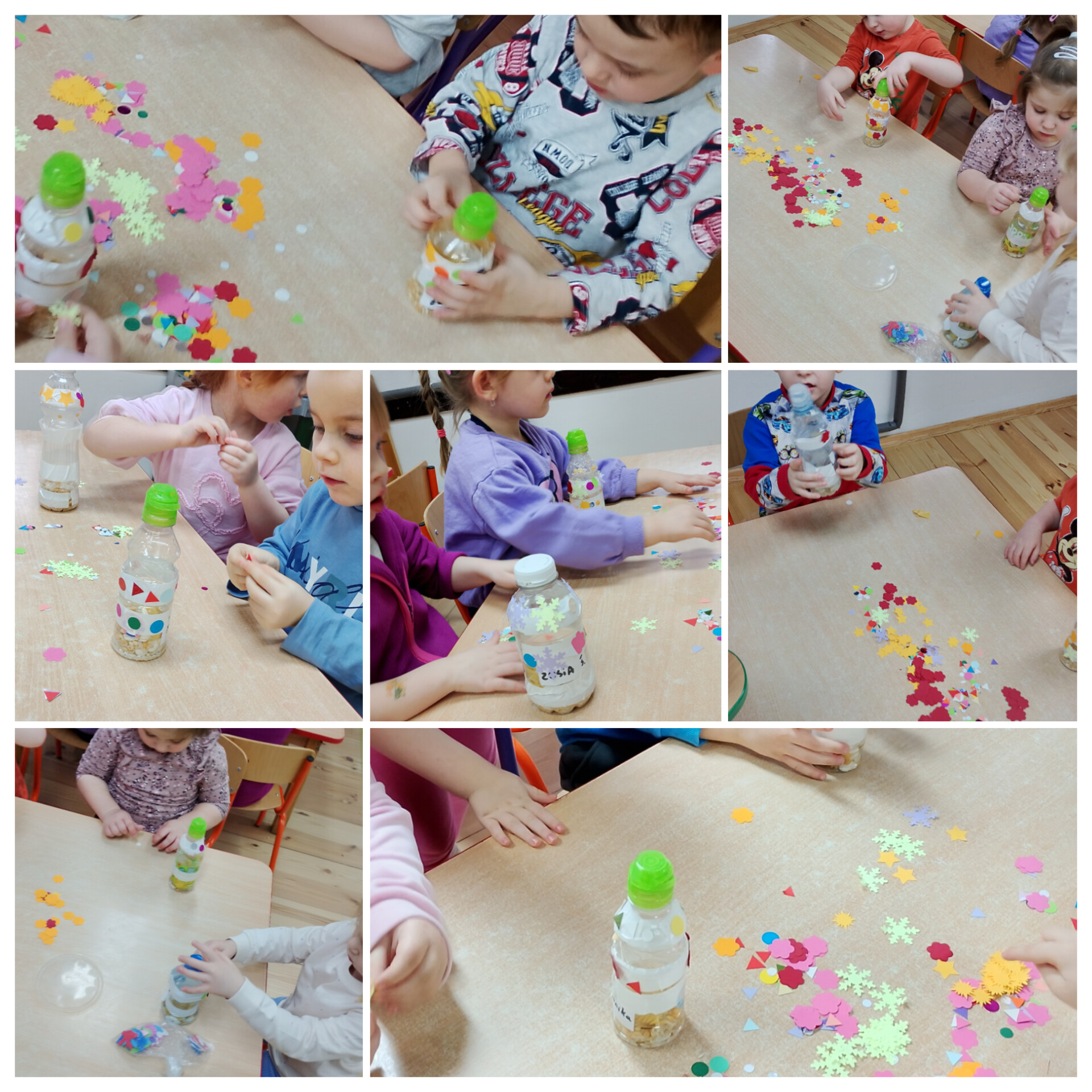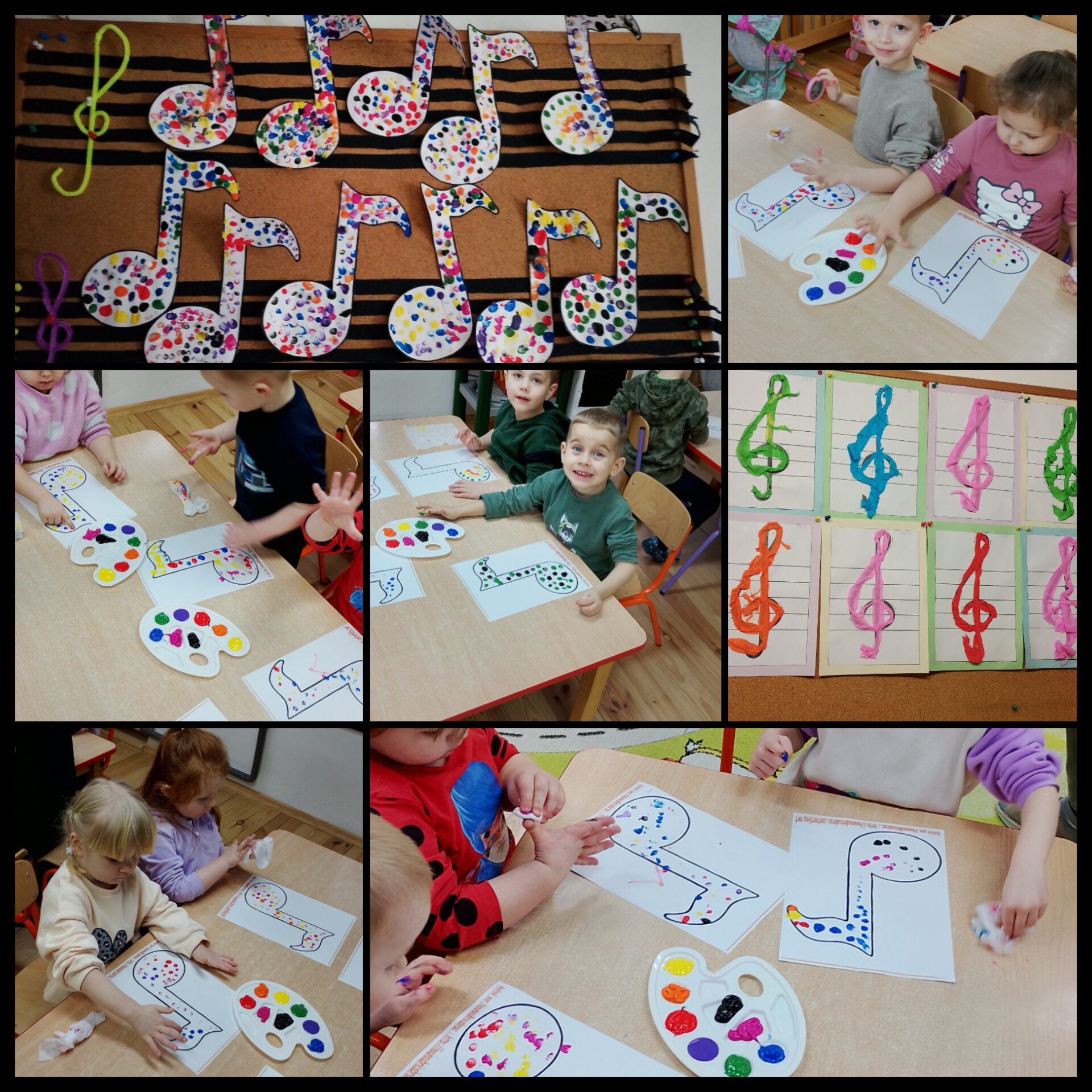 Poznaliśmy game oraz nazwy nut, graliśmy na różnych instrumentach, uczyliśmy się słuchać muzykę w otoczeniu. Uczyliśmy się też o dźwiękach na wsi. Tworzyliśmy własne grzechotki, na których uczyliśmy się grać różne nastroje i emocje.