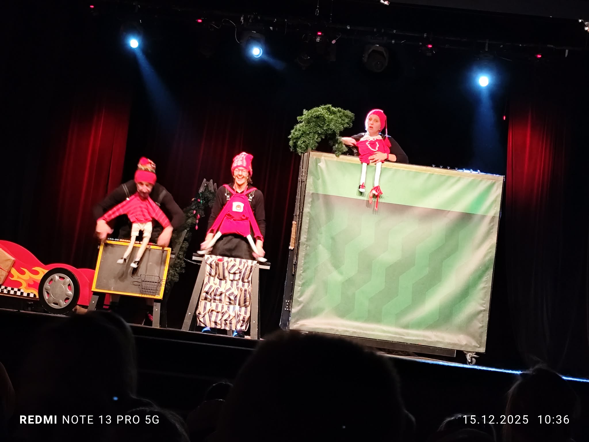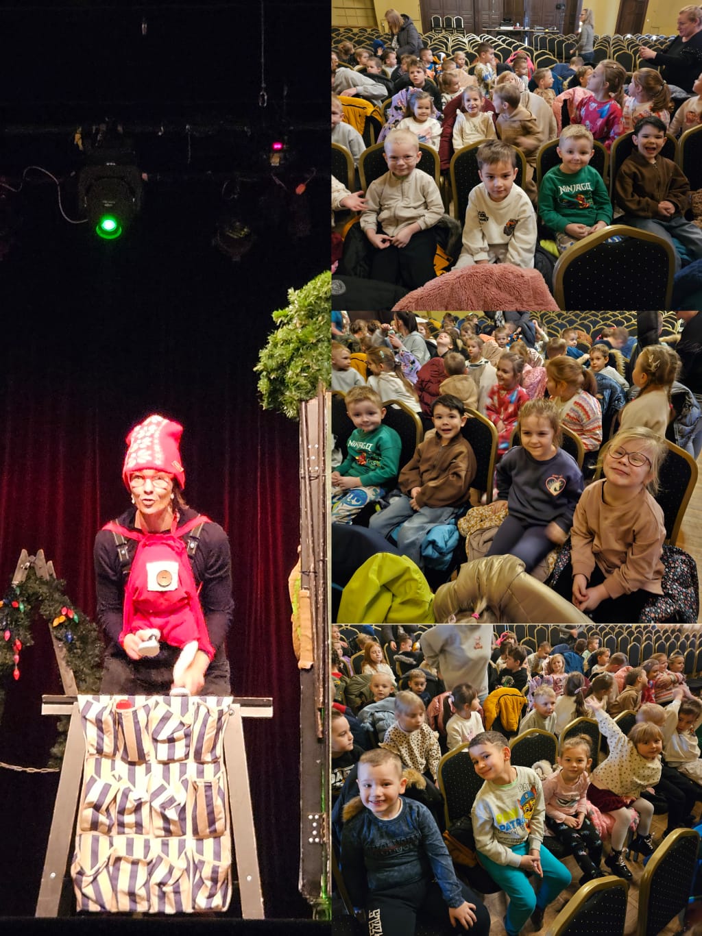Nasi przedszkolacy wybrali się do Rawicza na przedstawienie pt.:"Zaginiony prezent". Było dużo śmiechu i wspaniałej zabawy przedświątecznej. Były elfy...bombki...światełka...i gwiazda z czubka choinki...no i...zaginiony prezent! To był mile spędzony czas!"