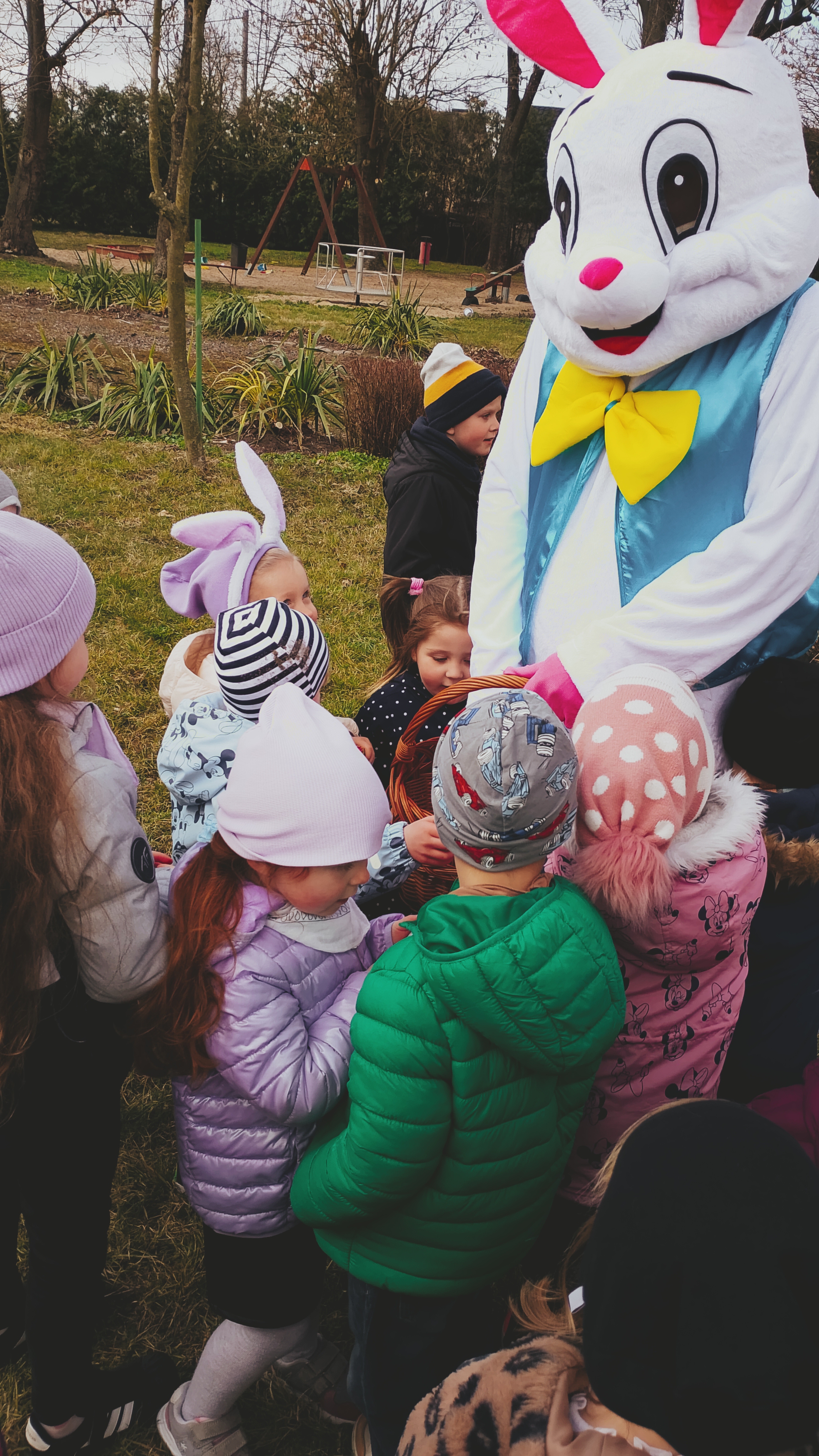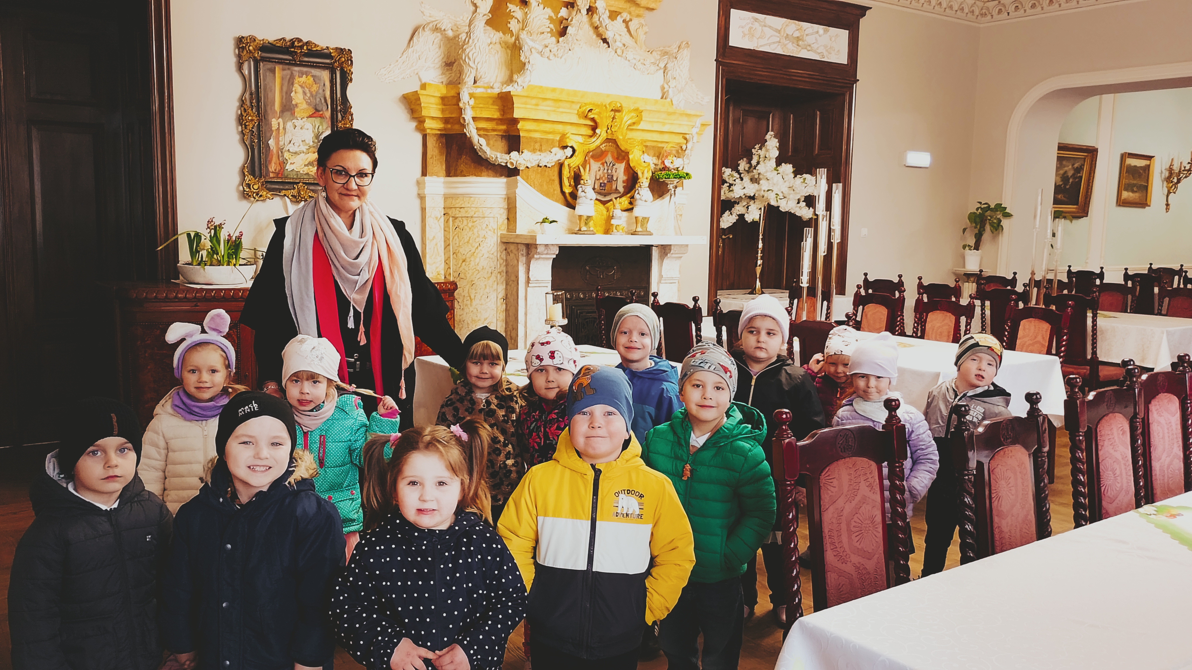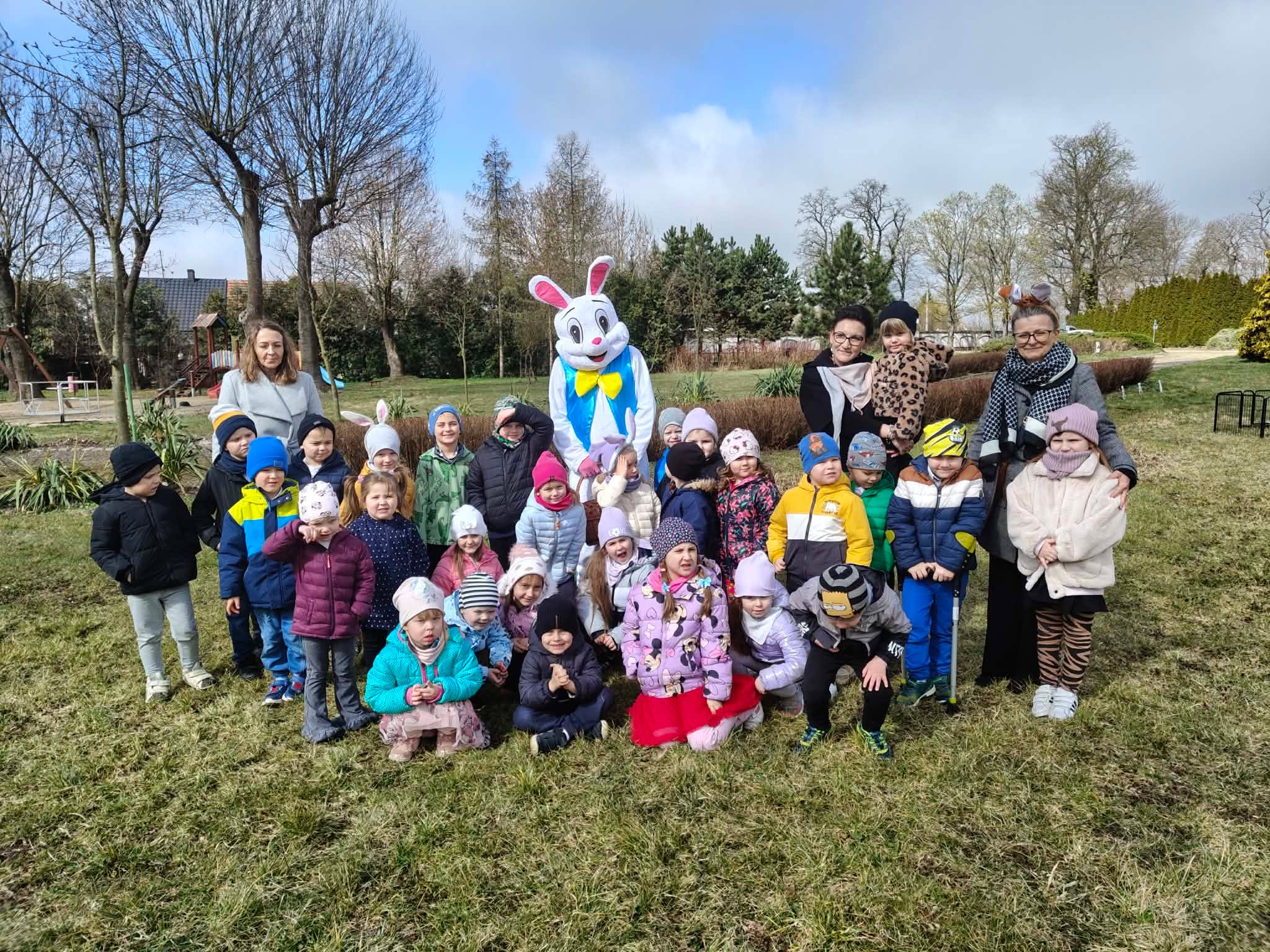 Przedszkolacy z Trzebosza na spotkaniu z zajączkiem w Pałacu