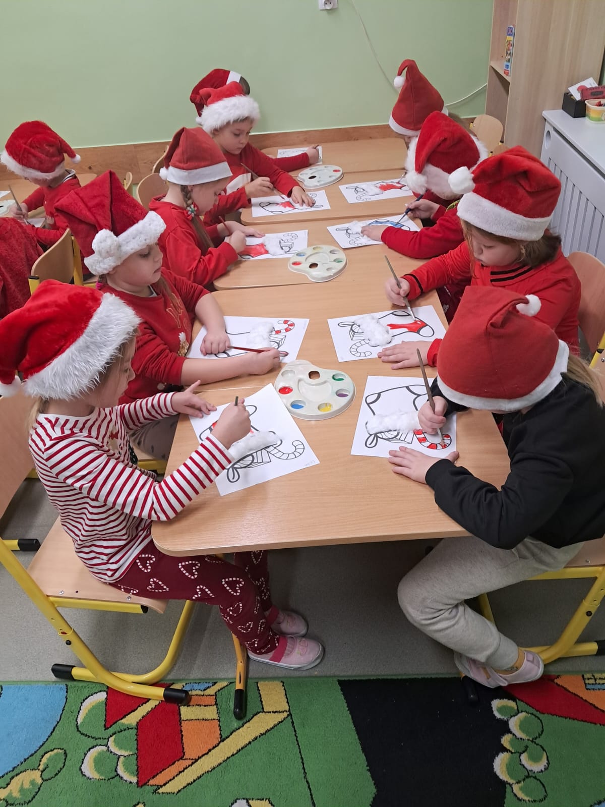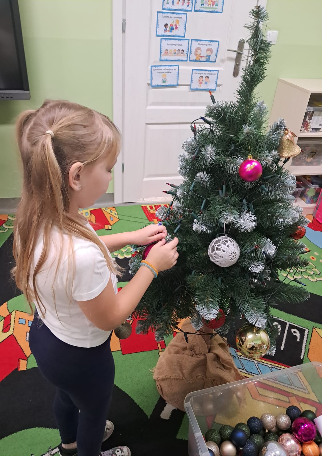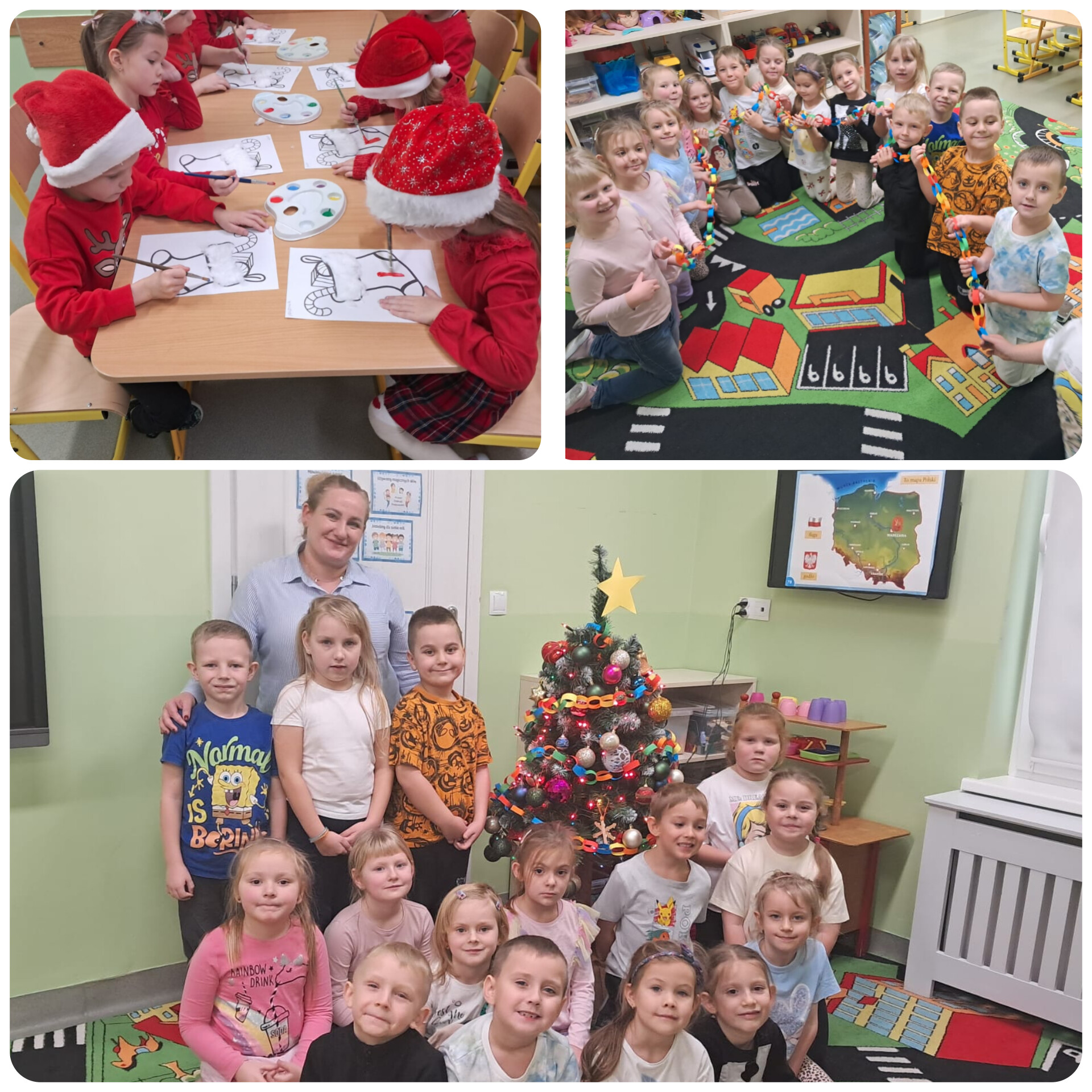 W minionym tygodniu Pszczółki ubrały piękną, świateczną choinkę. Wykonały też długi kolorowy łańcuch oraz malowały skarpety.