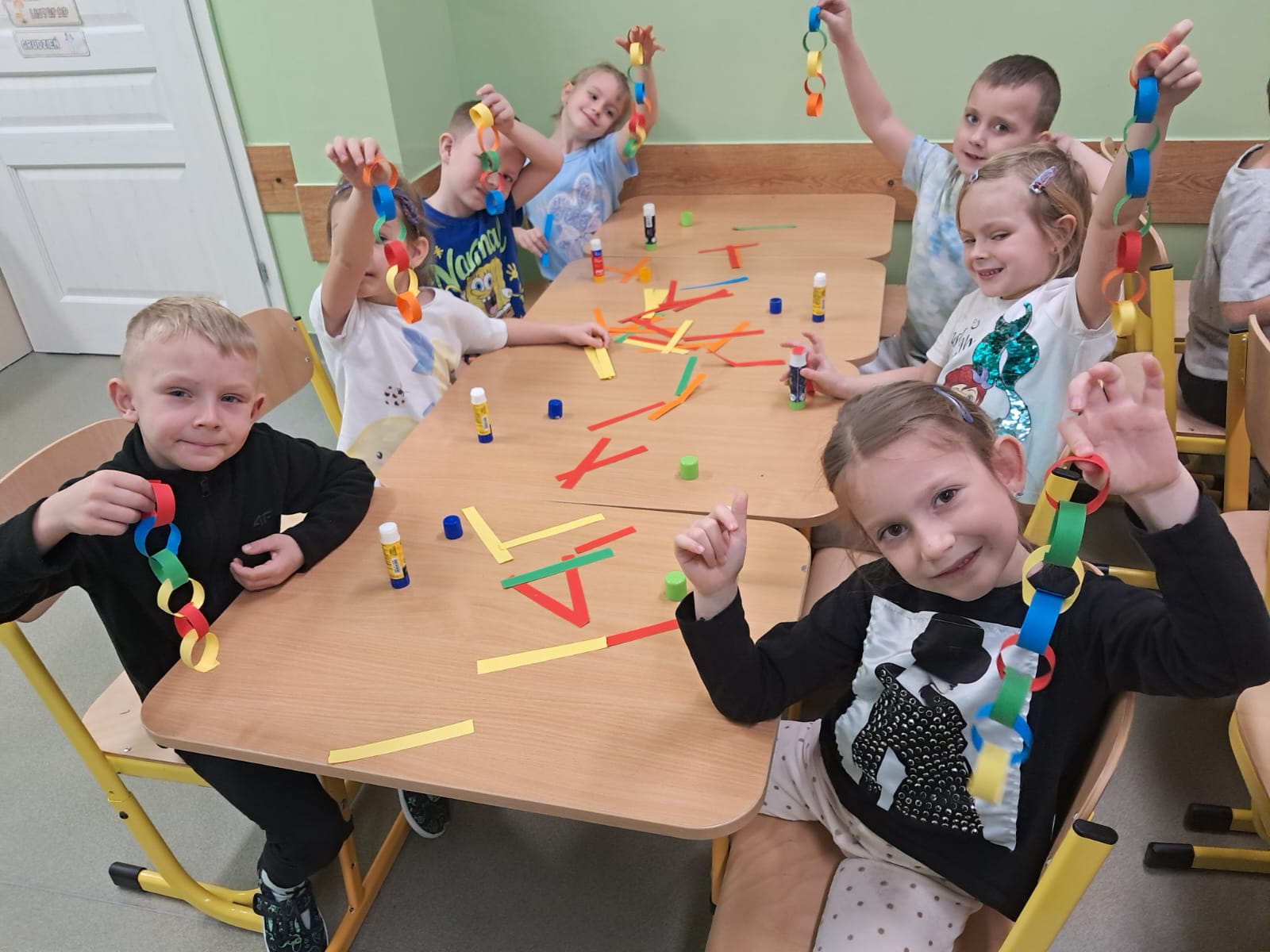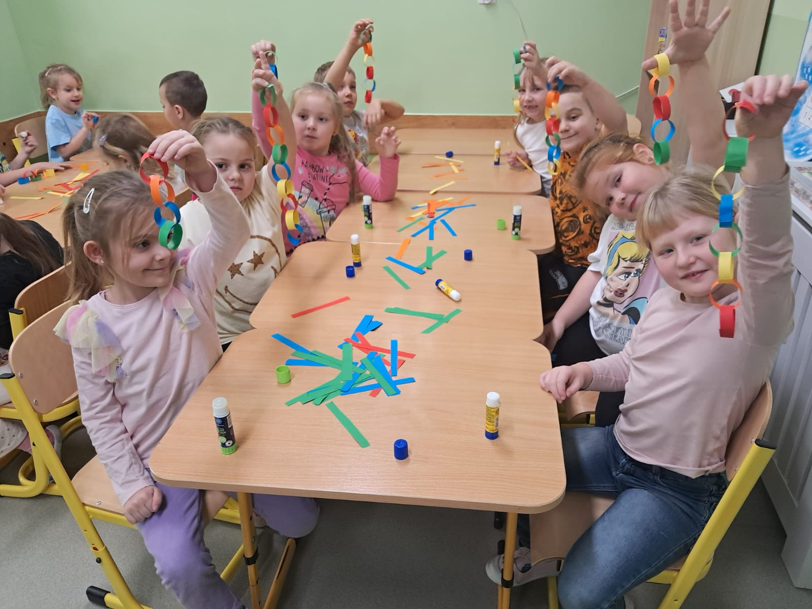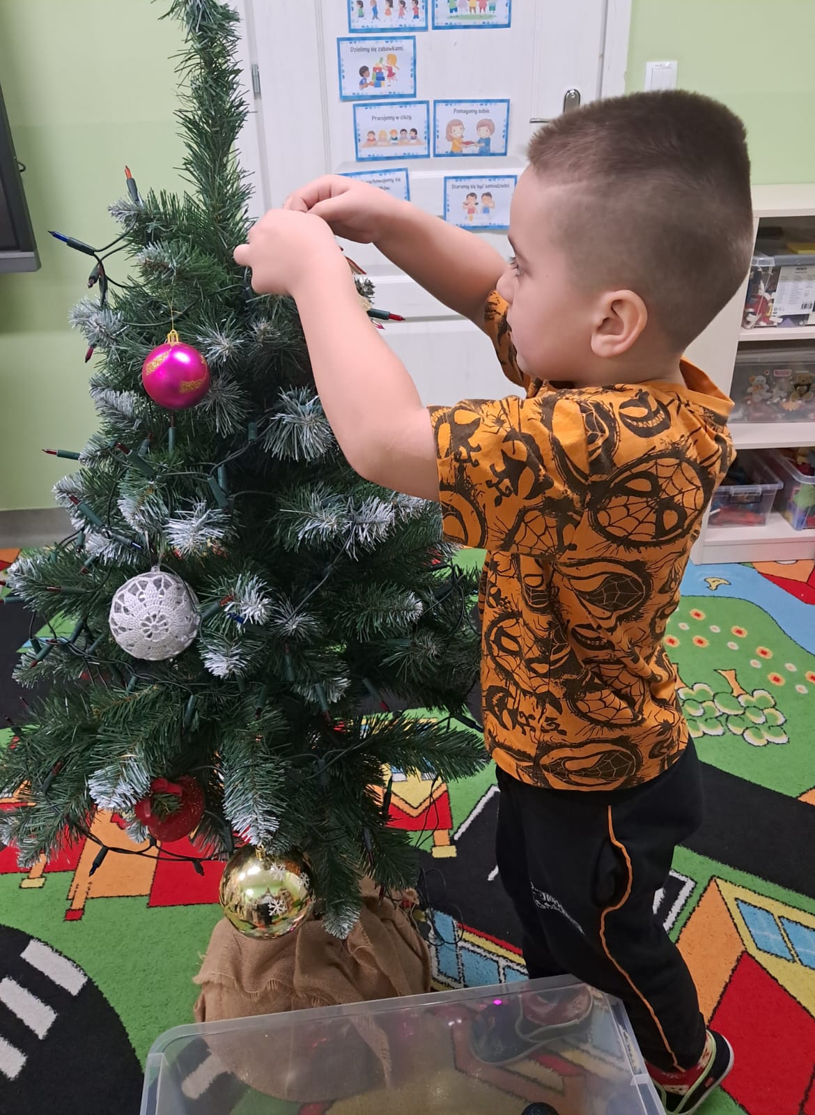 W minionym tygodniu Pszczółki ubrały piękną, świateczną choinkę. Wykonały też długi kolorowy łańcuch oraz malowały skarpety.