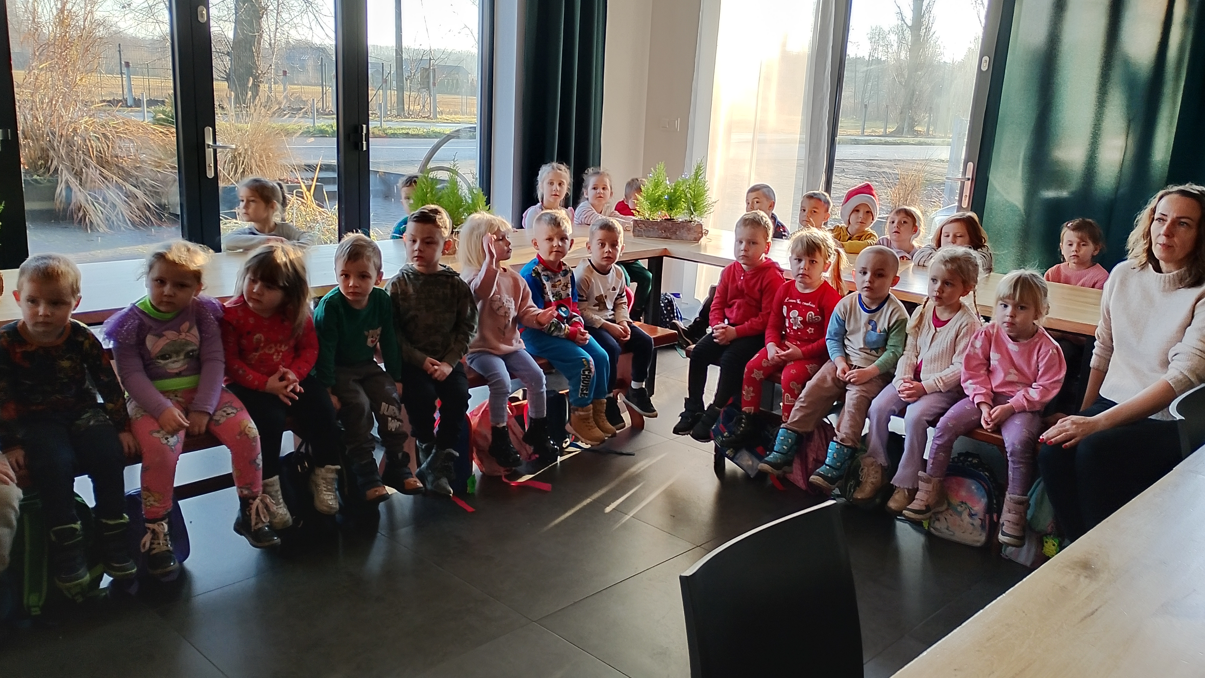 10 grudnia Żabki i Sówki z Trzebosza wybrały się na wycieczkę do Ambrozji w Boszkowie, na spotkanie z Mikołajem. Czekało na nas wiele ciekawych atrakcji. Wałkowaliśmy, wykrawaliśmy i dekorowaliśmy pierniki, robiliśmy świąteczne magnesy, wieszaliśmy pranie oraz ubieraliśmy choinki. Nie zabrakło zabaw przy muzyce i wspólnego śpiewania kolęd. Oczywiście najważniejsza była wizyta "prawdziwego" Mikołaja. To była wspaniała przygoda