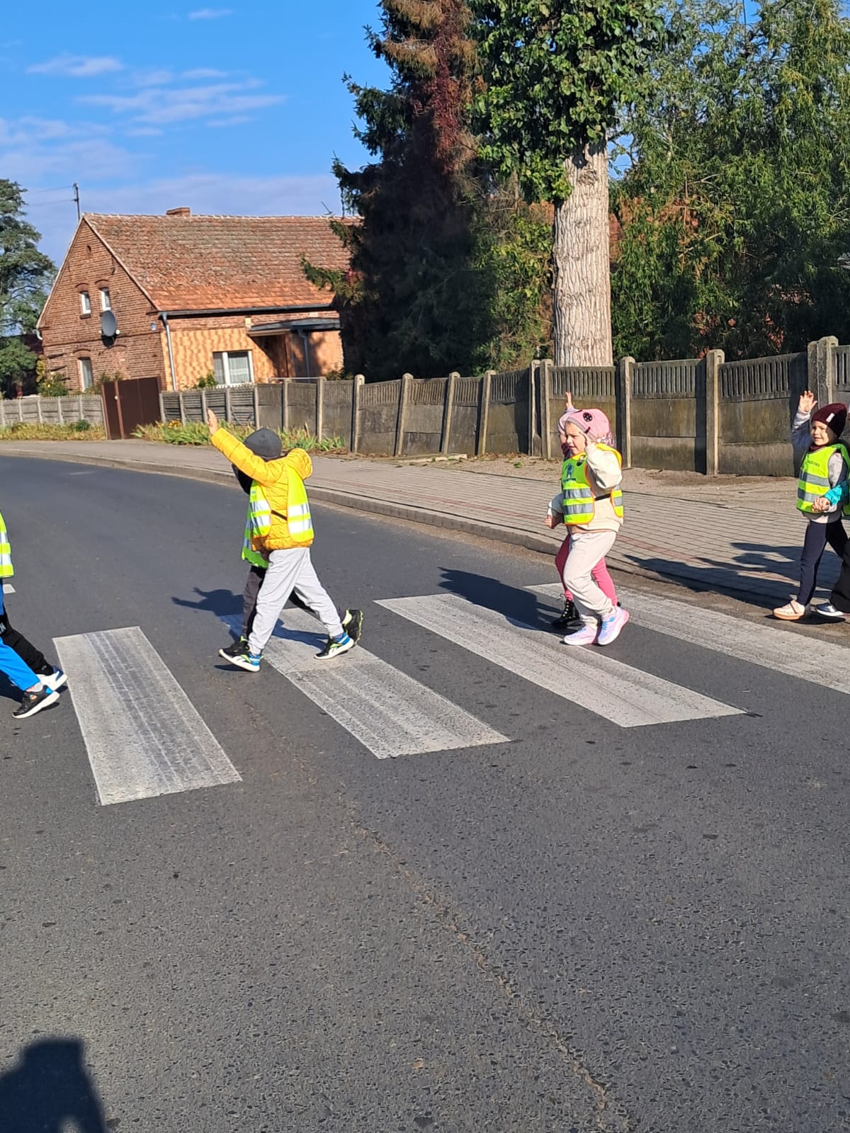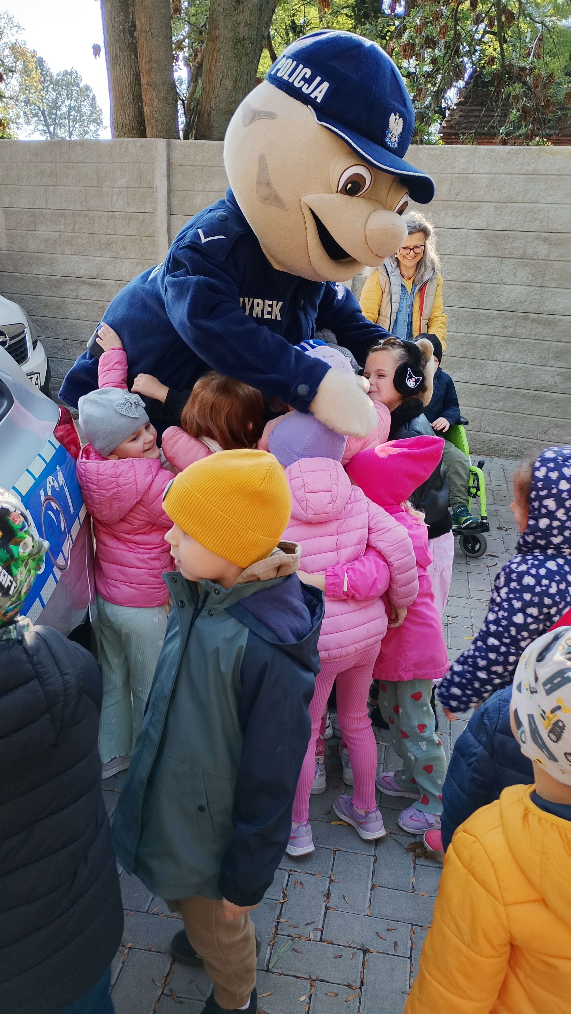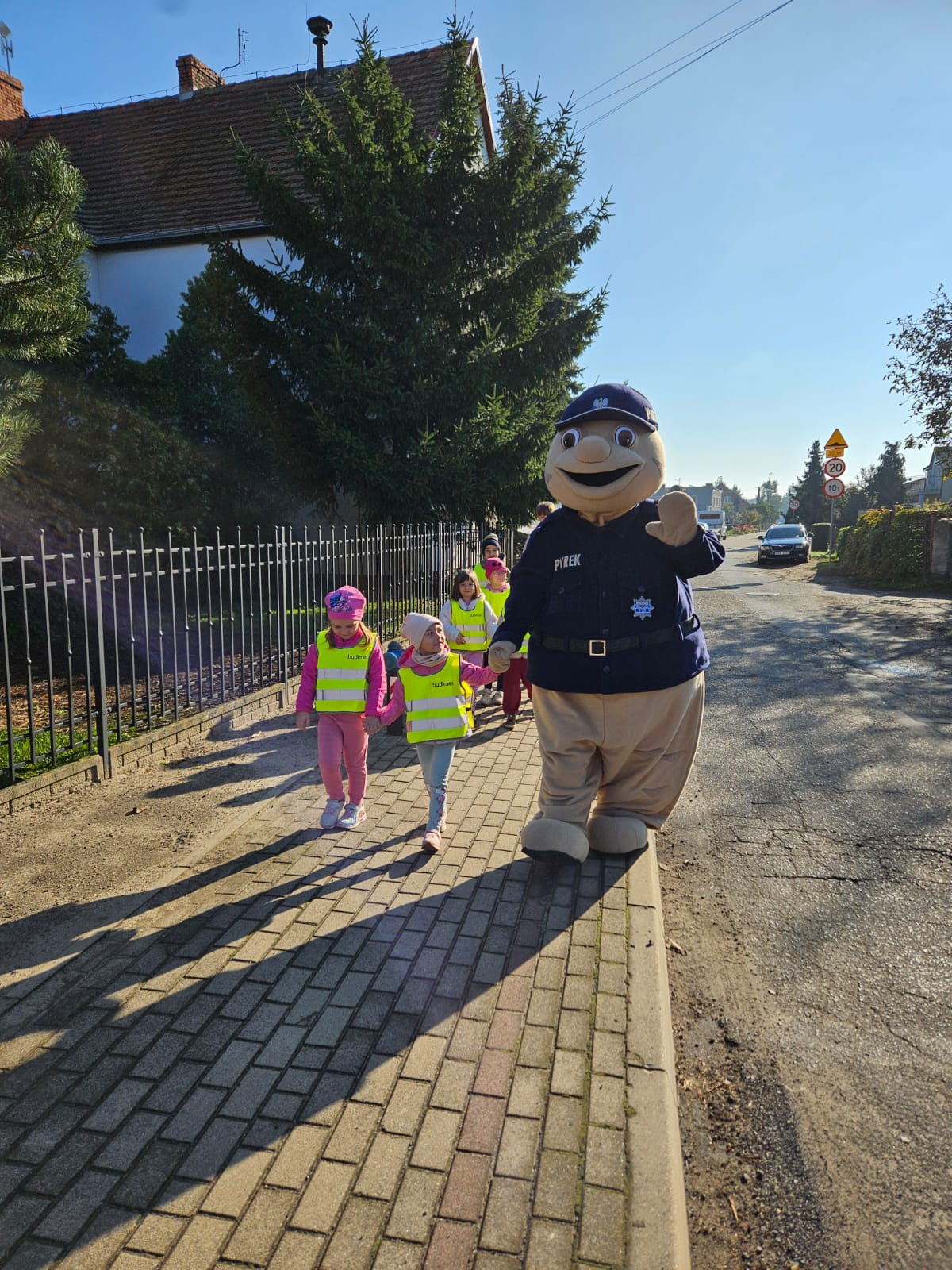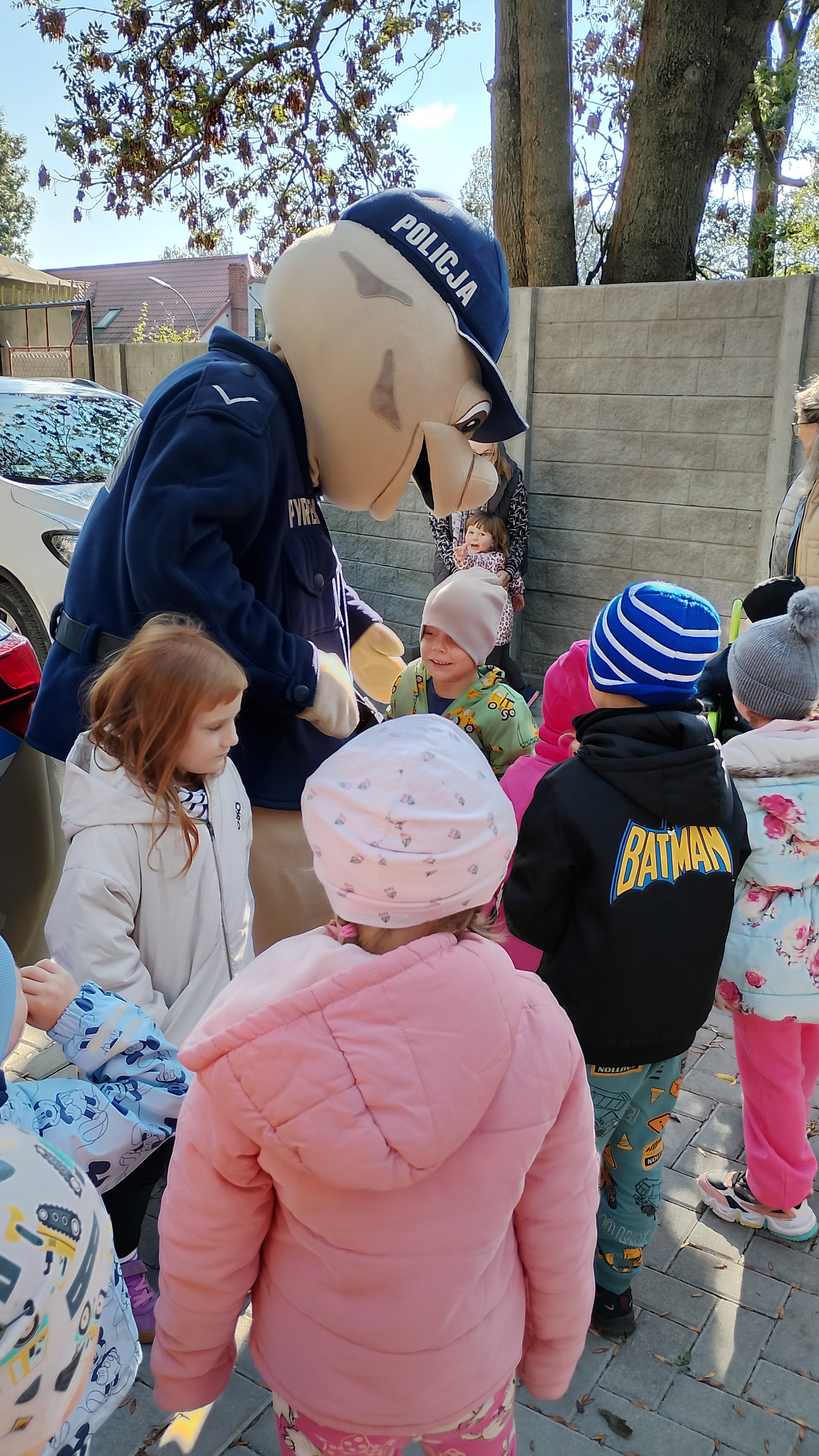 Dziś nasze przedszkola odwiedził sierżant Pyrek wraz z Panią asp.sztab. Katarzyna Łacinnik. Przypominając zasady ruchu drogowego wspólnie przechodziliśmy przez przejście dla pieszych.