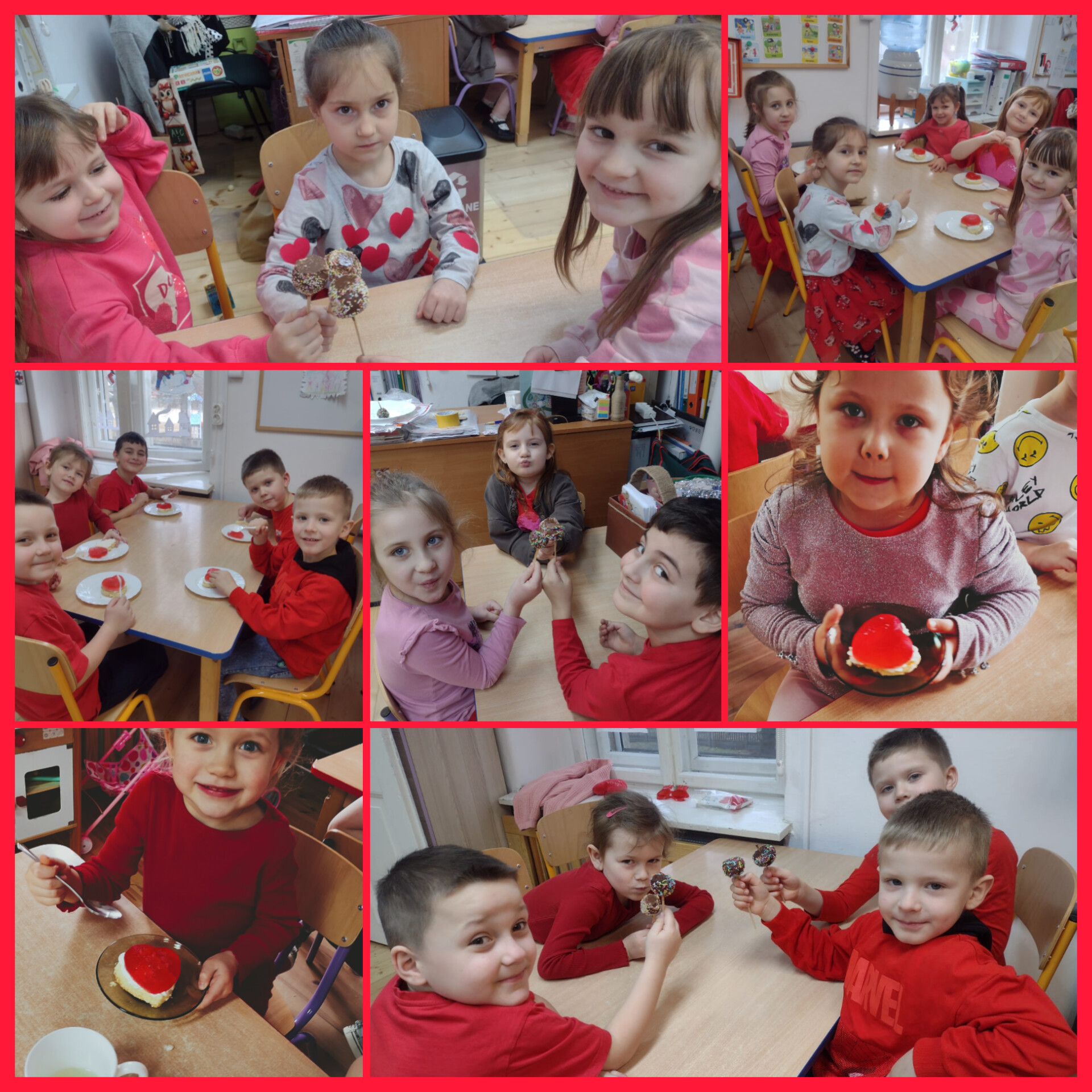Oczywiście nie zabrakło pysznych niespodzianek od naszych Kucharek... ten walentynkowy deser był wprost przepyszny a kolorowe kuleczki .... Mmmniam