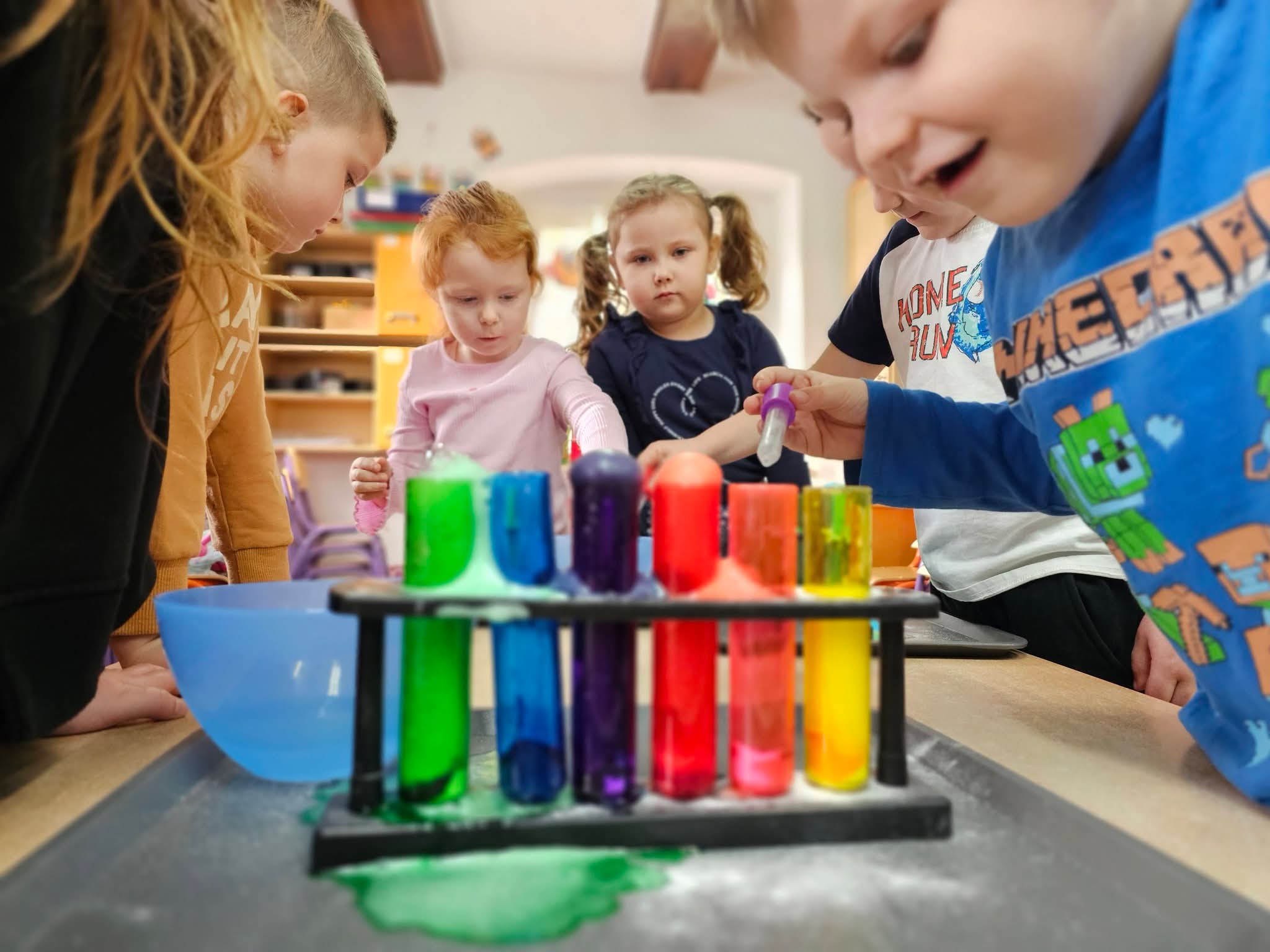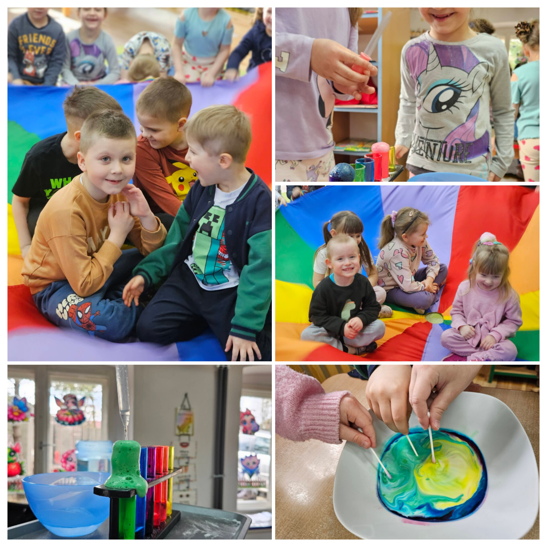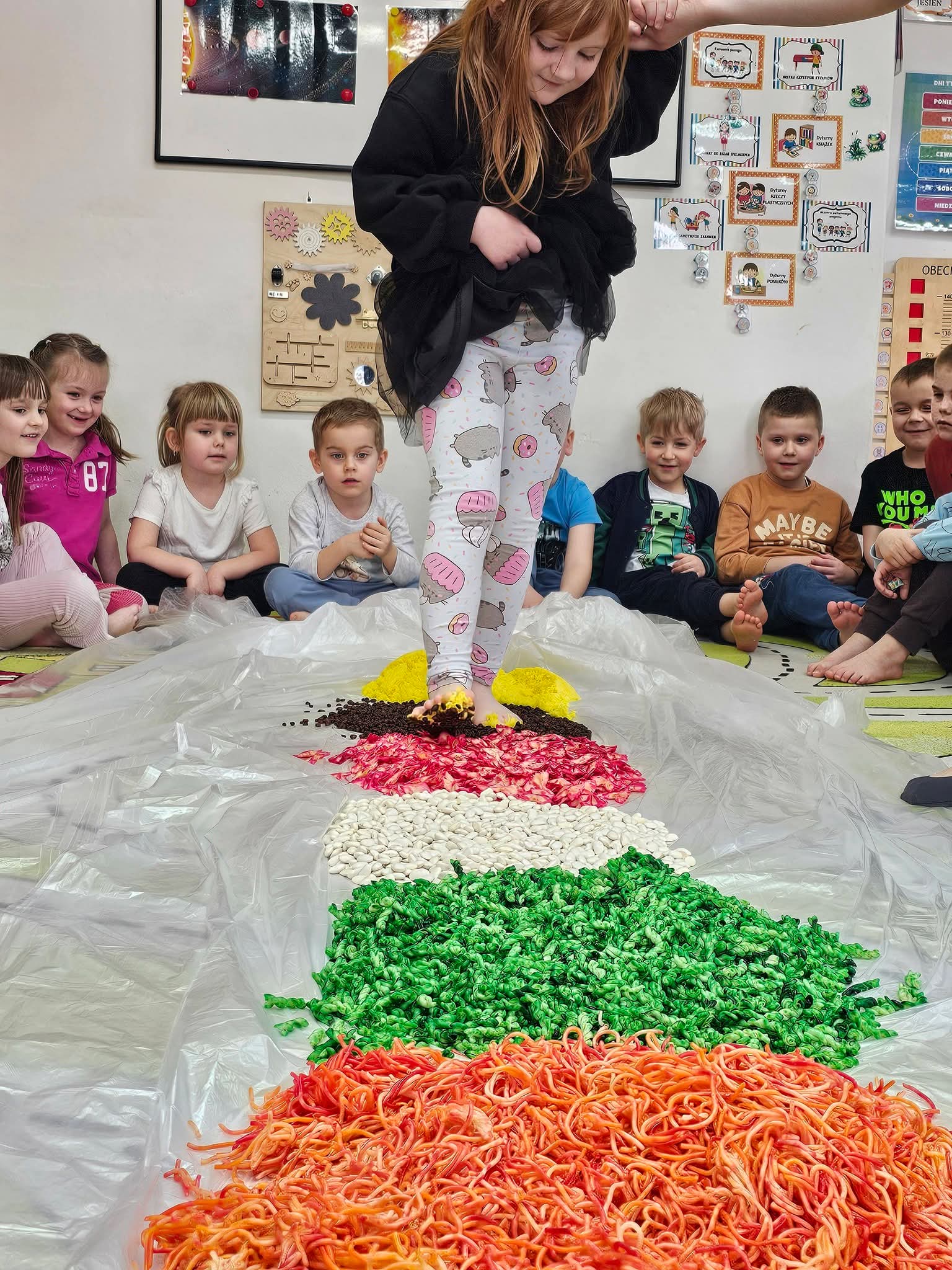 W minionym tygodniu przedszkolaków w Trzeboszu odwiedziły cudowne panie z Areny Kreatywnej Edukacji z Leszna i zaprosiły do wspaniałych, kolorowych warsztatów. Dzieci eksperymentowały z kolorowymi wulkanami oraz tęczowymi czarami. Doświadczyliśmy też niezwykłej ścieżki sensorycznej. Niezwykłej, bo złożonej z kolorowych makaronów. Zabawy były energiczne i ciekawe. Dzieci zachwycone a my dziękujemy za spotkanie