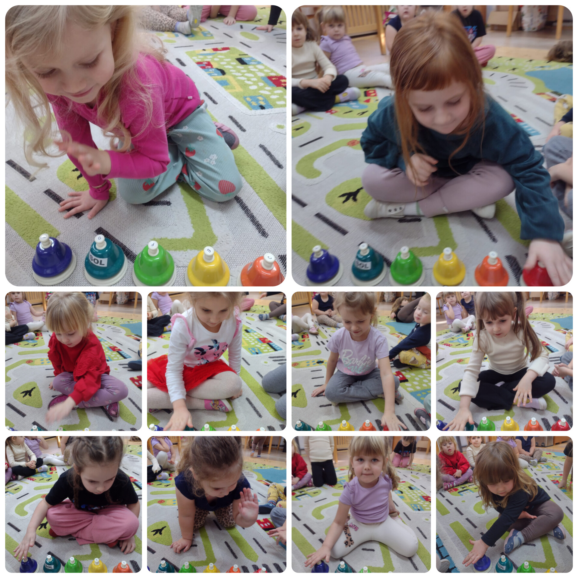 " Na muzycznych zajęciach dodatkowych z p. Kasią gramy na różnych instrumentach ( teraz na dzwonkach naciskanych... ), tańczymy i inscenizuje my różne utwory muzyczne. Muzyka nie tylko rozwija ale ( odpowiednia ) wprawia też w dobry nastrój ! "